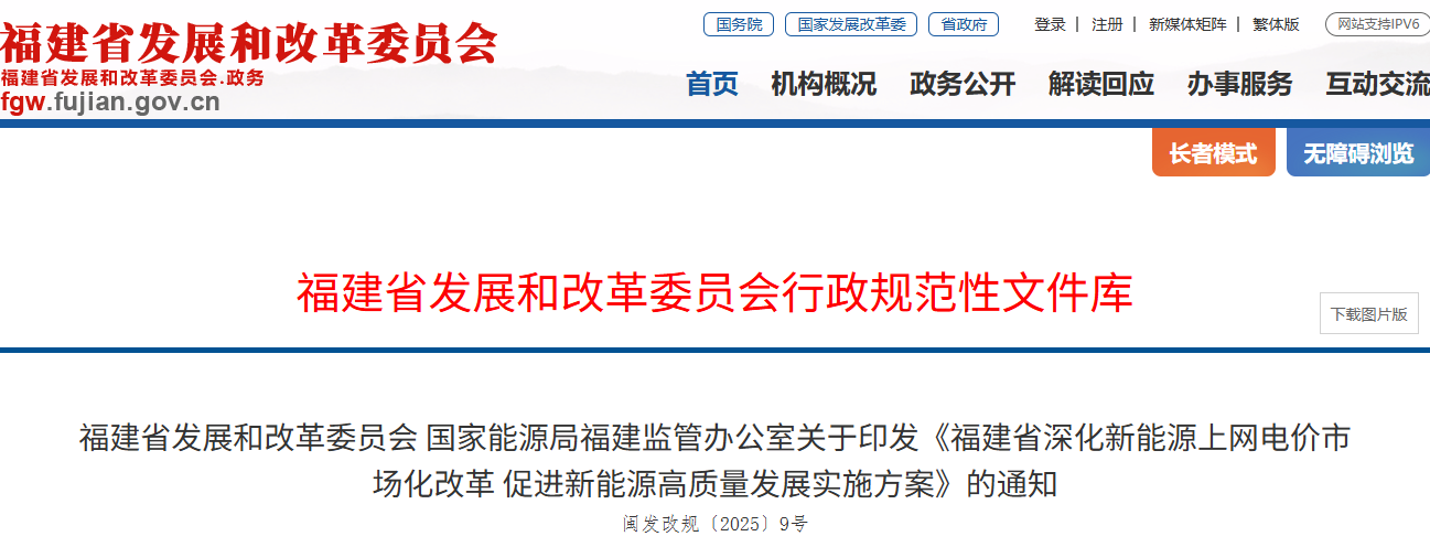 福建省發布深化新能源上網電價市場化改革促進新能源高質量發展實施方案